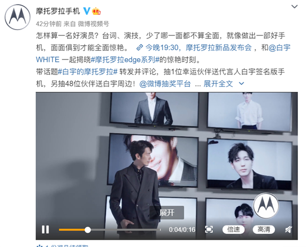 今晚,摩托罗拉新品发布会将正式召开。就在刚刚,官方放出了代言人视频,同时从微博文案中可以确定摩托罗拉代言人白宇将出席今晚摩托罗拉新品发布会。实际上,关于摩托罗拉两款新品的配置参数信息已经基本曝光,而且定价还将有重大惊喜。