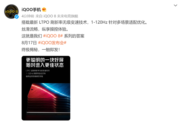 8月5日,iQOO手机公布了iQOO 8系列更多信息。