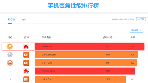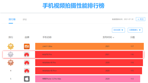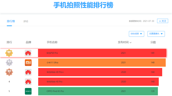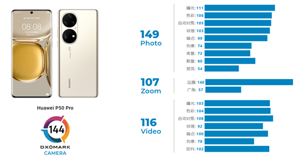 ️华为刚刚发布的新旗舰P50 Pro,DxOMark评测成绩已经出炉,总分高达144分,以一分优势力压小米11 Ultra,重回世界第一,DxOMark称其为“所有领域的翘楚”。