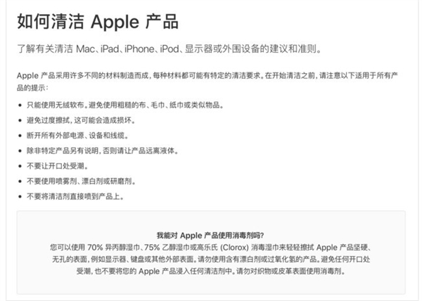日前,苹果《如何清洁Apple产品》的文档更新,新增两点内容: