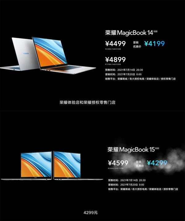 7月14日晚,荣耀举行了MagicBook新品发布会,带来了荣耀MagicBook系列锐龙版笔记本。价格方面,荣耀MagicBook系列新品共有14英寸和15英寸两个版本,其中14英寸首销优惠价4199元起,15英寸首销优惠价4299元。另外,该新品将于今晚8点30开启预售,7月20日0点迎来首销。
