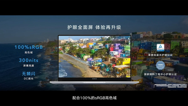 屏幕方面,荣耀MagicBook系列锐龙版搭载了一块护眼屏,这款屏幕有2大护眼权威认证,可实现三重护眼保障,呵护年轻消费群体的眼睛健康。 同时,这款新品的14英寸微边框为4.8mm,15英寸微边框45.3mm,并拥有100% sRGB高色域、300nits屏幕亮度和高达87%的屏占比,达到了全面屏的效果,而且薄至15.9mm,重1.38kg,轻巧便携。