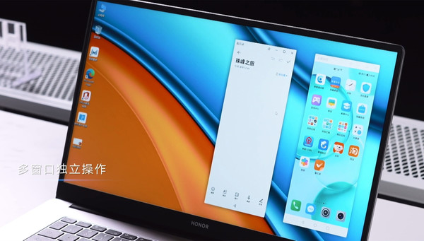 更值得一说的是这款新品的多屏协同功能。荣耀MagicBook系列锐龙版支持多屏协同三窗口多开 ,且三个窗口之间均支持文档、图片等的拖拽传输。