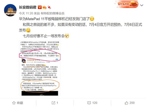 数码博主@长安数码君 爆料称,华为将于7月4日开启新品预热,7月6日正式发布MatePad 11,目前样机已经送达华为线下门店。