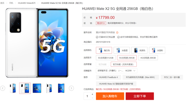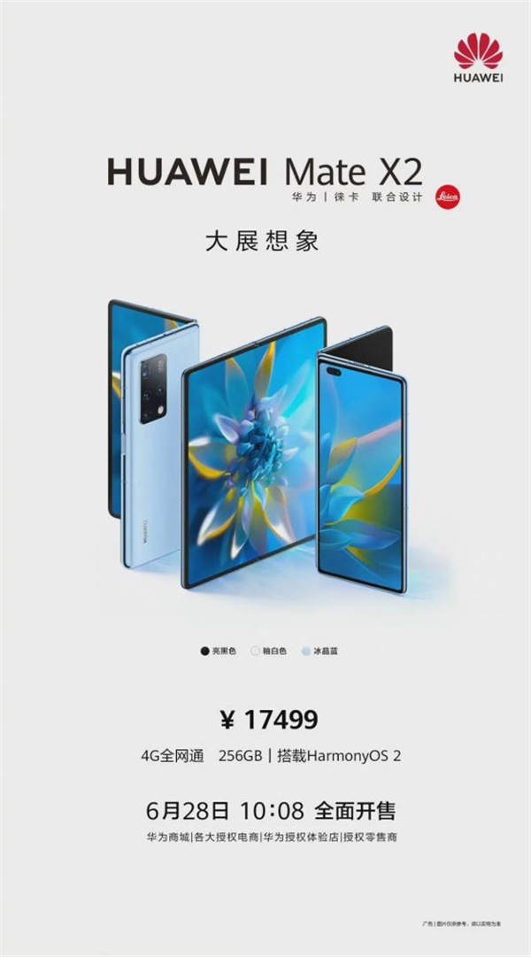 今天华为正式开售了华为Mate X2 4G版本,新机同样搭载麒麟9000芯片,预装鸿蒙OS系统,256G版本售价为17499元。
