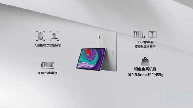 配置上YOGA Pad Pro采用了旗舰级处理器骁龙870,这是第一款采用870处理器的平板,搭配8+256的存储,电池容量也高达10200mAh。