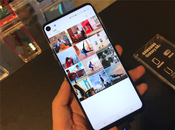 三星A8s正面采用打孔屏设计,摄像头在手机的左上角,这款屏幕三星称之为“黑瞳全视屏”。手机背面则采用三摄像头设计。在颜色上,三星A8s有三种颜色可选,分别是外星银、极光黑、精灵蓝三种颜色,都采用了渐变机身设计,手机中框上也采用了与后壳类似的渐变设计。