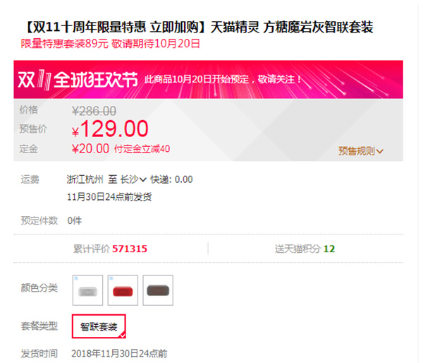 2018年双11十周年庆天猫精灵89元智能套装强势重磅袭来这次双11十周年天猫精灵不仅发布了由A.l.Labs首席设计师李剑叶老师设计的天猫精灵方糖魔岩灰,而且在10月20日-11月10日期间预订可享受3.2折的优惠套装价格。