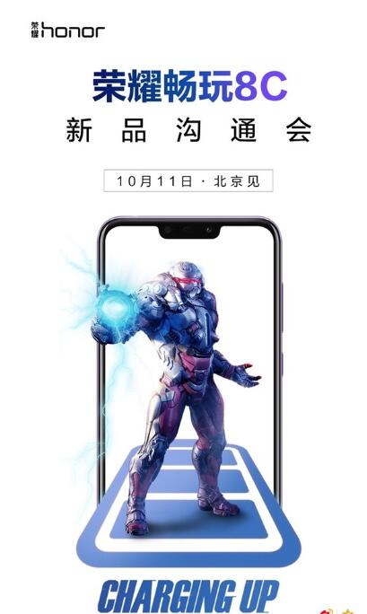 荣耀畅玩8c什么时候发布?微博网友@新潮电子徐林 日前放出了荣耀畅玩8C的宣传海报,显示该机将于10月11日北京发布。6.26英寸刘海屏,分辨率为1520×720,屏幕纵横比为19:9。