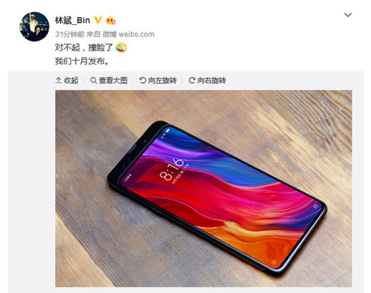 小米mix3发布时间曝光:预计十月份推出,今天小米联合创始人林斌发布了一条微博表示小米mix将在10月发布,并且放出了一张mix3的真机图,来看看吧。