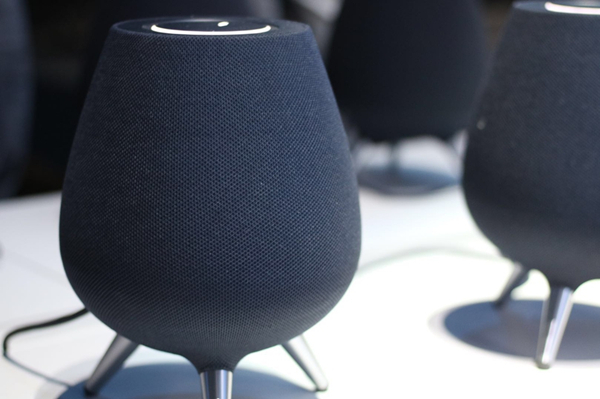Galaxy Home由音效品牌AKG合作,内置8个麦克风和6个发声单元,通过WiFi可与三星电视同步播放。发布会现场,三星用160个Galaxy Home设备播放了一段音乐,效果很棒。