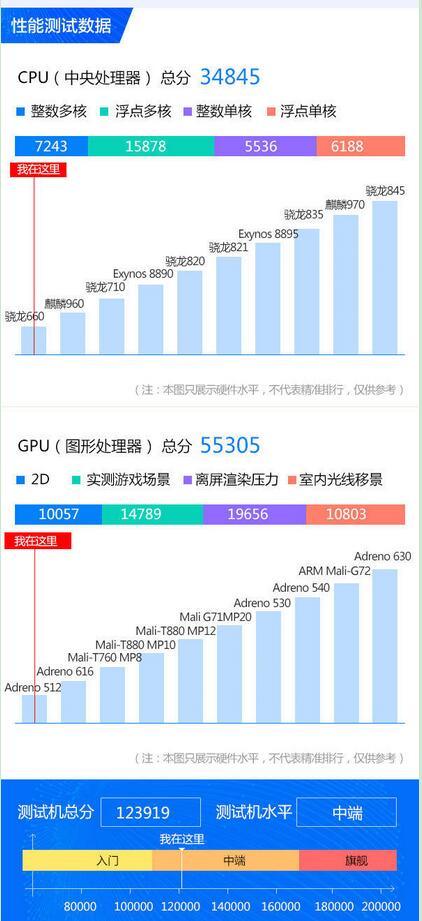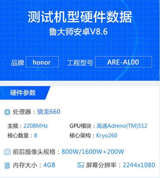 8xmax前置800W像素,后置1600W+200W双摄。采用7.12英寸水滴屏,分辨率为2244×1080,配备4GB 内存,拥有4900 mAh大容量电池。性能测试跑分如下,