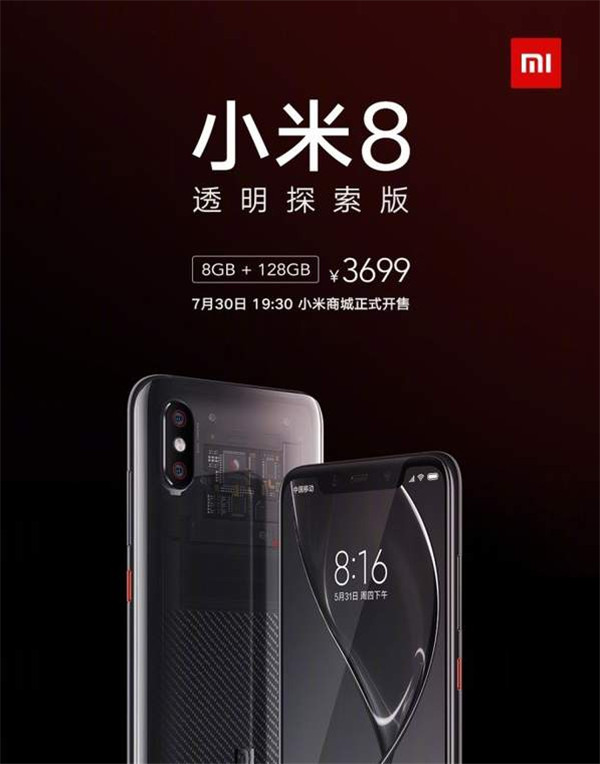 小米8透明探索版正式开卖,售价3600元,备受大家期待的小米8透明探索版终于要在今晚的7点半发售了。这款新机将在小米商城开售,售价3600元。