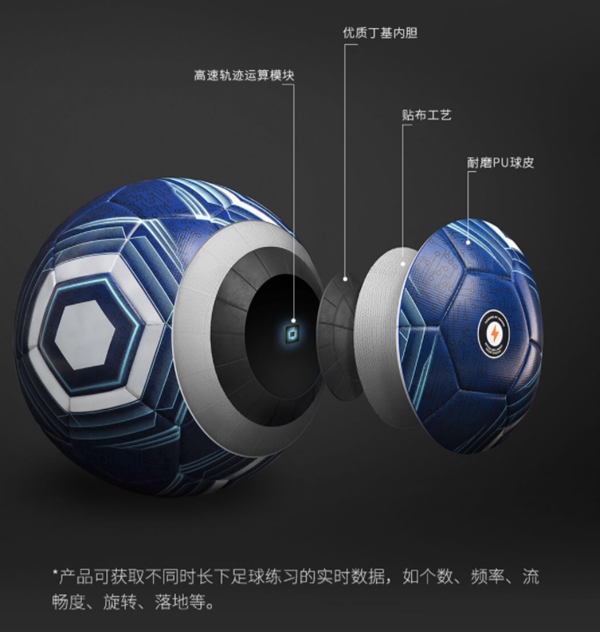 作为一款智能足球,内置高速轨迹运算模块,整合微型计算芯片和高性能传感器,实时运行专业运动轨迹算法,分析动态轨迹,精确记录运动结果。