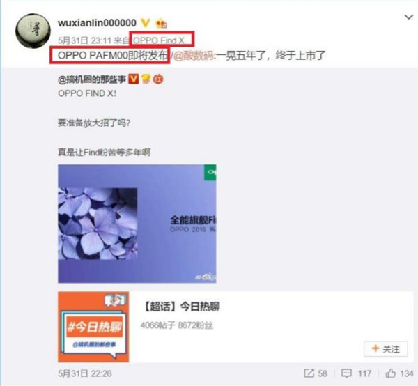值得注意的是,此前业内人士已经披露OPPO这款新旗舰会配备6.42英寸显示屏,但没有透露分辨率等方面的信息。而OPPO手机用户熟悉的大神级人物@wuxianlin000000则在微博上给出了:“1080×2340还是1440×3120?”这样的参数让大家猜测,看上去作为旗舰机型的登场OPPO Find X似乎支持QHD+级别分辨率的可能性似乎会更高些。