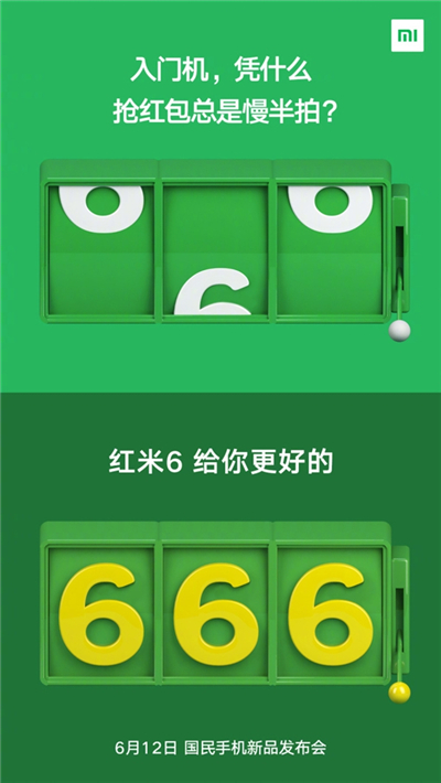 第二张海报写着“入门机凭什么抢红包总是慢半拍,红米6给你更好的。”这是系统层面的优化,MIUI升级来一波,好说。