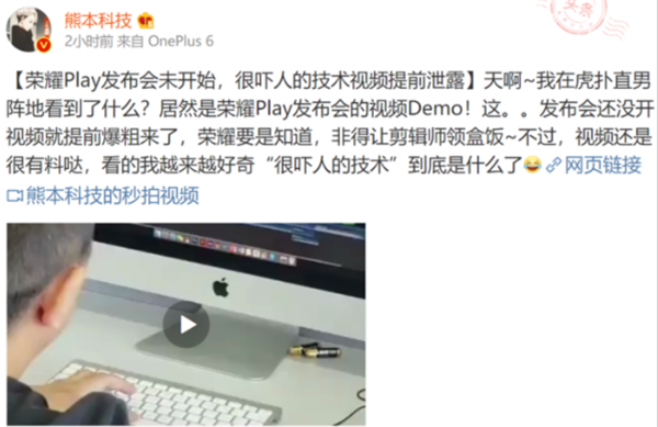 按照荣耀总裁赵明之前的爆料,荣耀Play此次搭载的“很吓人的技术”是软硬件的协同突破,而泄密视频只展示了硬件部分,软件上如何突破要等到发布会才能知晓了。