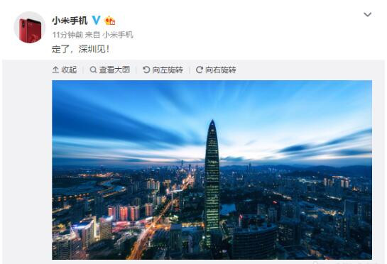 今天上午小米手机在微博上表示:“定了,深圳见!”并配上了一张深圳的照片。据网友们推测,此次即将亮相的就是大家万众期待的旗舰机小米7了!从目前曝光的消息来看,本场发布会除了小米7以外,可能还会发布小米8周年特别款手机,或许就叫小米8!