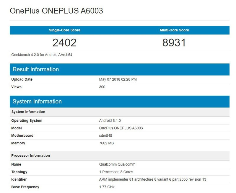 一加6跑分多少?随着一加6的发布日期临近,关于一加6手机的曝光信息也越来越多。近日,一加6突然经现在Geekbench跑分网站中,多核跑分逼近9000大关。我们一起来看看吧!