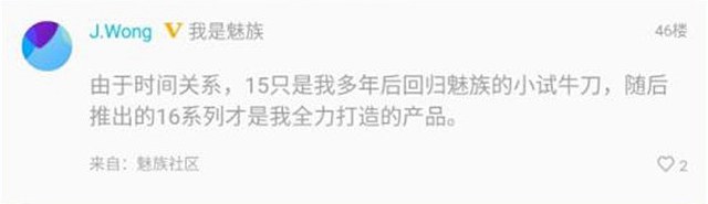 A:根据“黄章”此前在魅族论坛的表示:由于时间的关系,魅族15只是我多年回归的小试牛刀,随后推出的魅族16系列才是我全力打造的产品。