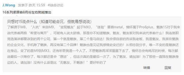 此外,黄章再次在魅族16发布时间做出了回应,黄章表示魅族16系列会跟着8月左右就能推出。