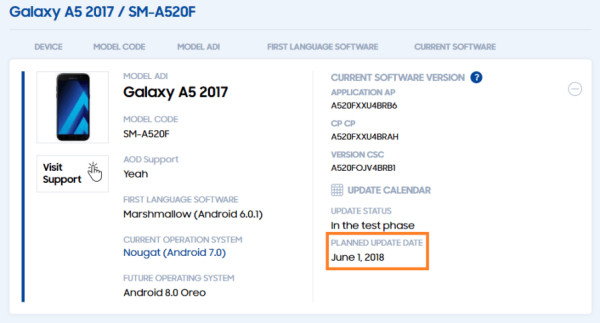 同一个网站早前曾提到Galaxy A3,A5和A7(2017)预计将于2018年5月25日发布Android 8.0更新,但现在推迟到了6月份。