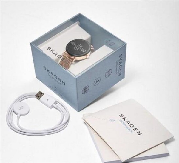 秉承着丹麦设计原则,对简约、经典设计与现代创新进行融合,Skagen Falster智能手表外观上采用圆形黑色表盘,正面是一块OLED 触控屏幕,表壳大小为42mm,细节上做工不错,外观也比较时尚。该款智能手表配有皮质表带或者金属表带,皮质表带有黑色和棕色可选,金属表带有银色和玫瑰金颜色可选。