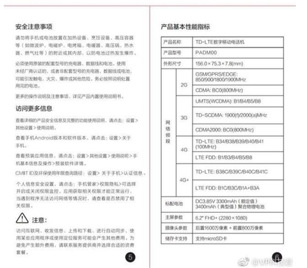 另外一张曝光的参数图显示,OPPO A3的三围尺寸为156.0×75.3×7.8mm,内置电池容量为3400mAh。该机搭载6.2英寸显示屏,分辨率为2280×1080像素,后置1600万像素镜头,前置800万像素自拍镜头,算是OPPO R15的低配版。