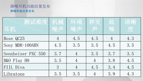 此次评测结果也针对消费者一直以来对降噪耳机的舒适度、音质、价格等方面的槽点进行了解释,让消费者在选购时有了更加科学客观的选择标准。降噪耳机底噪的评分对应了耳机佩戴时的舒适度;汪峰的FiilDiva耳机在降噪性能上与SonyMDR-100ABN不相伯仲,但声性能的评分却比Sony高出不少,并且价格也低了近一倍;家电噪声、人声噪声、突发噪声的分类测试也让消费者可以针对不同场景的使用需求进行选购。