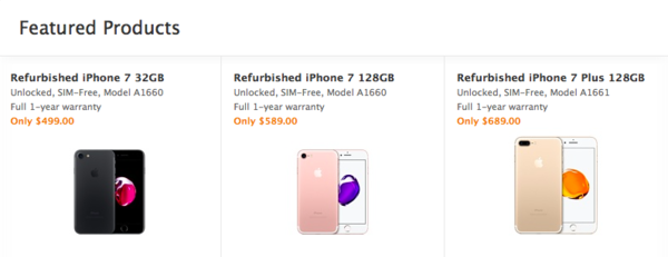 继美国运营商Virgin Mobile推出iPhone 7系列翻新版之后,现在苹果美国官网已开始推出该系列翻新产品,售价为499美元起,约合人民币3142元。