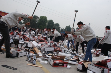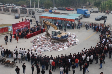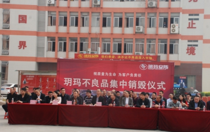 玥玛安防现场销毁200多万问题智能锁 多家媒体跟进咣!咣……伴随着钩机巨大的撞击声和十多名员工的铁锤声,首批装满10多辆推(叉)车的玥玛安防智能锁不到半个小时全部被销毁。这是玥玛安防工业园内集中销毁不良品的一幕,来自全国各地的玥玛经销商、员工和社会人员围成一个大圈,周围悬挂着数条印有“玥玛承诺:决不让不良品流入市场”和“把质量当生命 为客户负责任”字样的条幅,之后将会有200多万元的不良品陆续得到销毁。