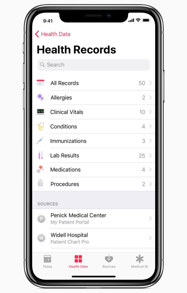 新的健康记录功能可将医院、诊所和现有的健康app进行整合,让用户可以随时随地查看多家提供商提供的医疗数据。从医疗机构接受治疗的患者可将来自多家机构的信息整理在一个视图中,并定期接收有关自己化验结果、用药情况以及健康状况等的通知消息。健康记录数据会被加密并受密码保护。