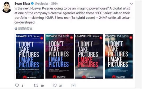 最新消息,爆料大神 @evleaks 在推特上送出了四张有趣的华为海报,其表达的主题只有一个 “I don't take pictures, I make pictures”。从这口号上看,他们的意愿是要成为照片的制造者,大力发展AI人工智能的态度不会改变。