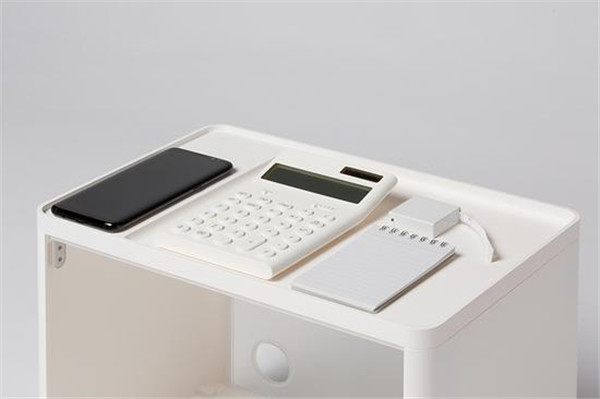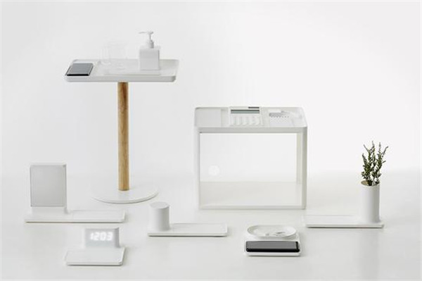 “On the Surface”是一系列配备了无线充电板的桌面用品,其中包括音箱、镜子、电子钟、收纳盒、收纳盘五种产品。