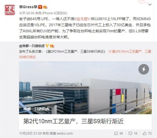 随后,外媒进一步推测称,高通即将发布的新旗舰SoC骁龙845也将采用10nm LPP工艺,它和Exynos 9810都有望用在明年1月的Galaxy S9/S9+上。