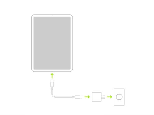 1、当ipad处于关机状态时,使用附带的线缆和电源适配器将iPad连接到电源插座。