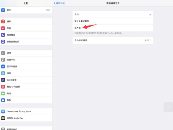 3、点击音频通话方式选项,勾选扬声器模式即可。