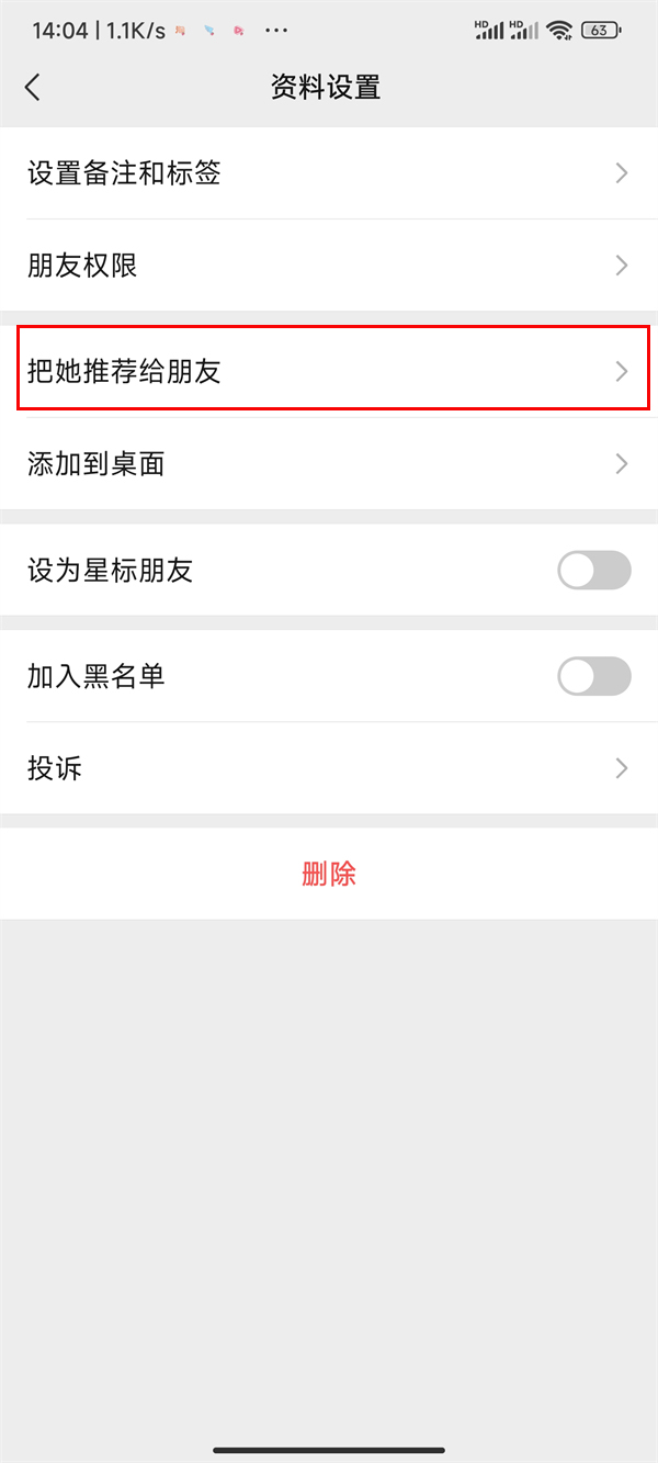 ️直接通过好友主页把她推荐给另一个朋友方法: