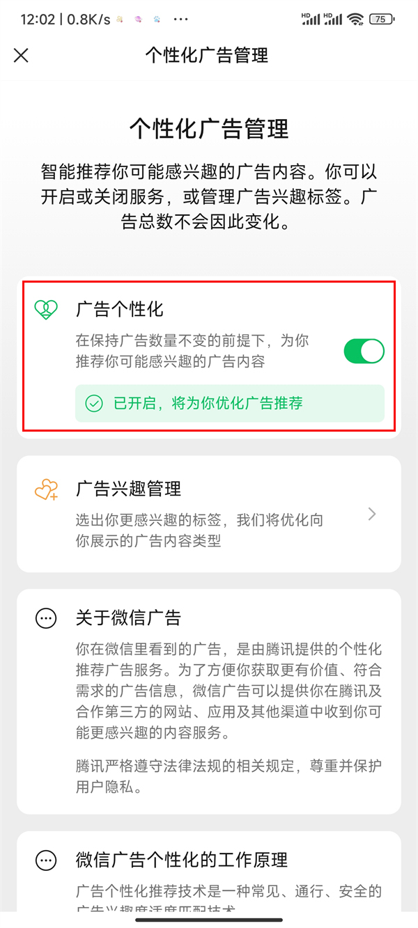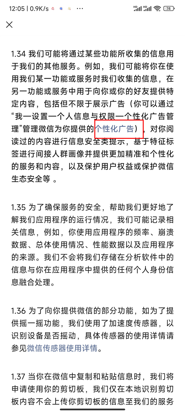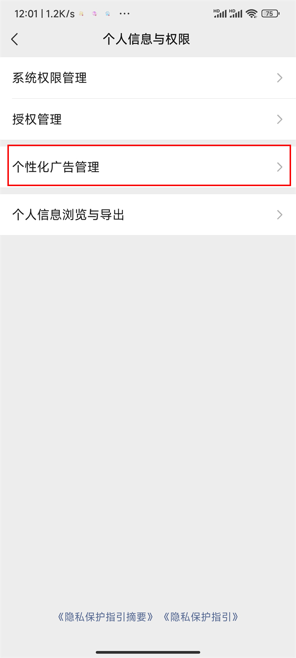 微信怎么屏蔽广告推送?️通过个人信息与权限关闭个性化广告方法: