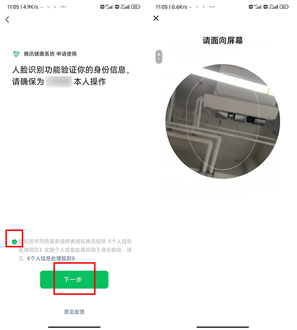 5、勾选协议,点击下一步,并完成人脸识别即可。