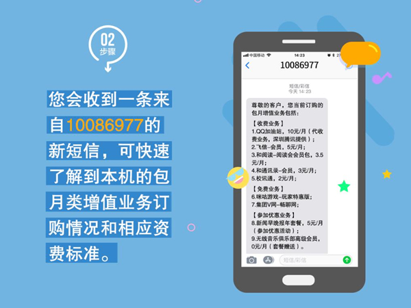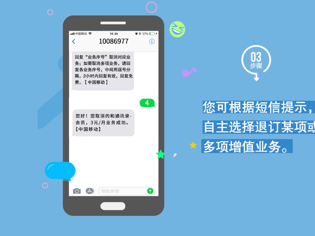 2、会收到一条来自10086977的新短信,根据短信提示,自主选择退订某项或多项增值业务。
