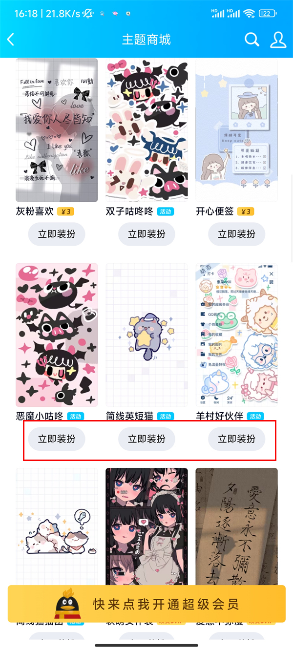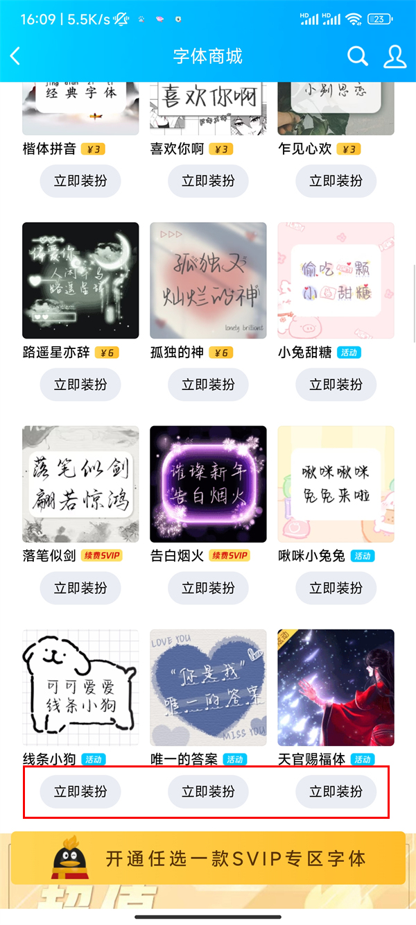3、找到自己喜欢的字体/主题,点击立即装扮即可。