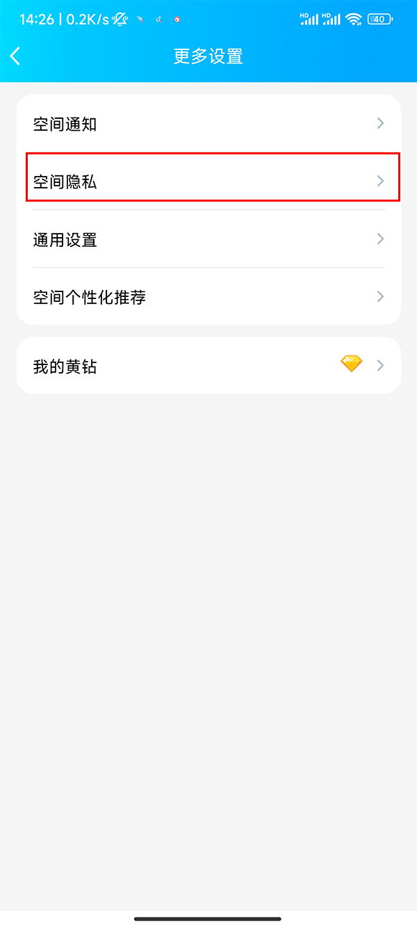 4、点击空间隐私。