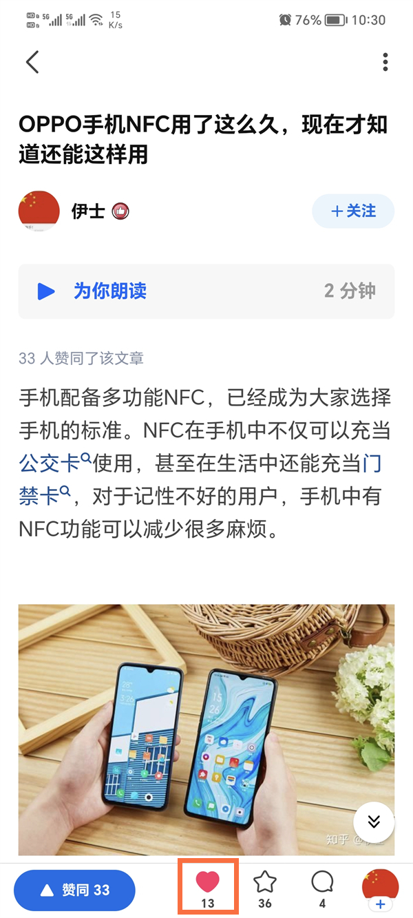 3、可以在文章下面查看是否点了喜欢。