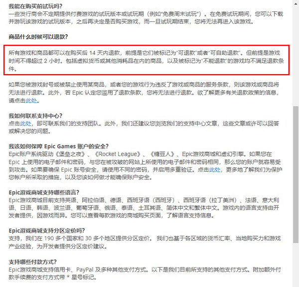 所有游戏和商品都可以在购买后 14 天内退款,前提是它们被标记为“可退款”或者“可自助退款”。但前提是游戏时间不得超过 2 小时。包括虚拟货币或其他消耗品在内的商品,以及被标记为“不能退款”的游戏均不满足退款条件。