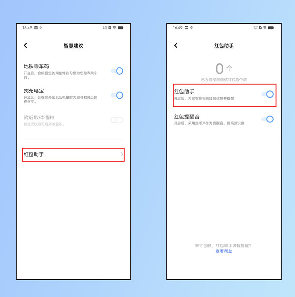2、点击【红包助手】,将“红包助手”、“红包提醒音”后的开关开启。