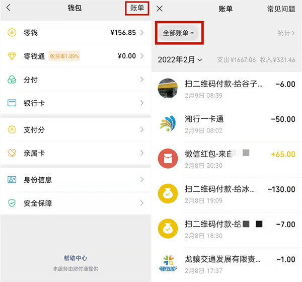 3、点击右上角的【账单】即可查看交易记录。