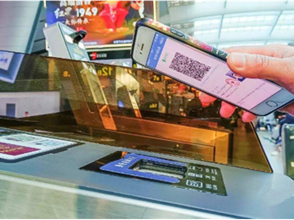 3、刷脸进行本人验证后,将临时身份证二维码对准闸机刷码进站即可。