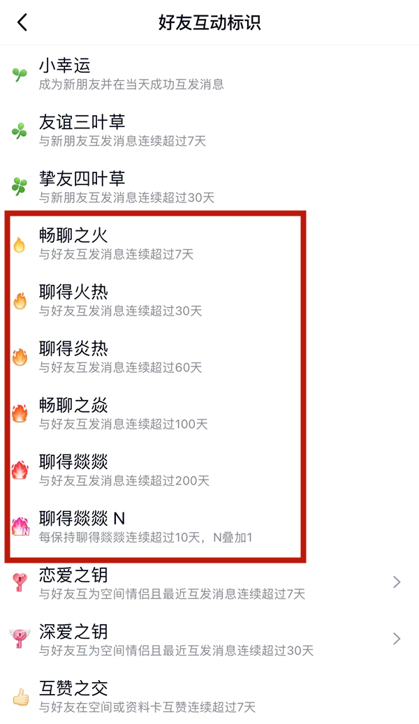 3、恋爱之钥,与好友互为空间情侣且最近互发消息连续超过7天。