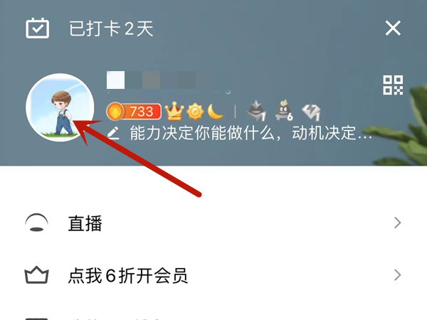 2、点击之后进入新页面,继续点击【头像】,跳转页面后,点击在头像旁边有一个【相机样式】的小图标。